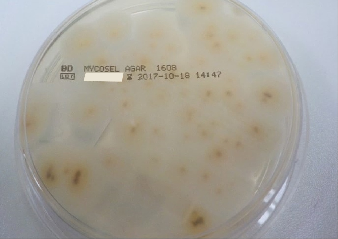 - auf Mycosel Agar kultureller Nachweis von Trichophyton erinacei (Abbildung 2)