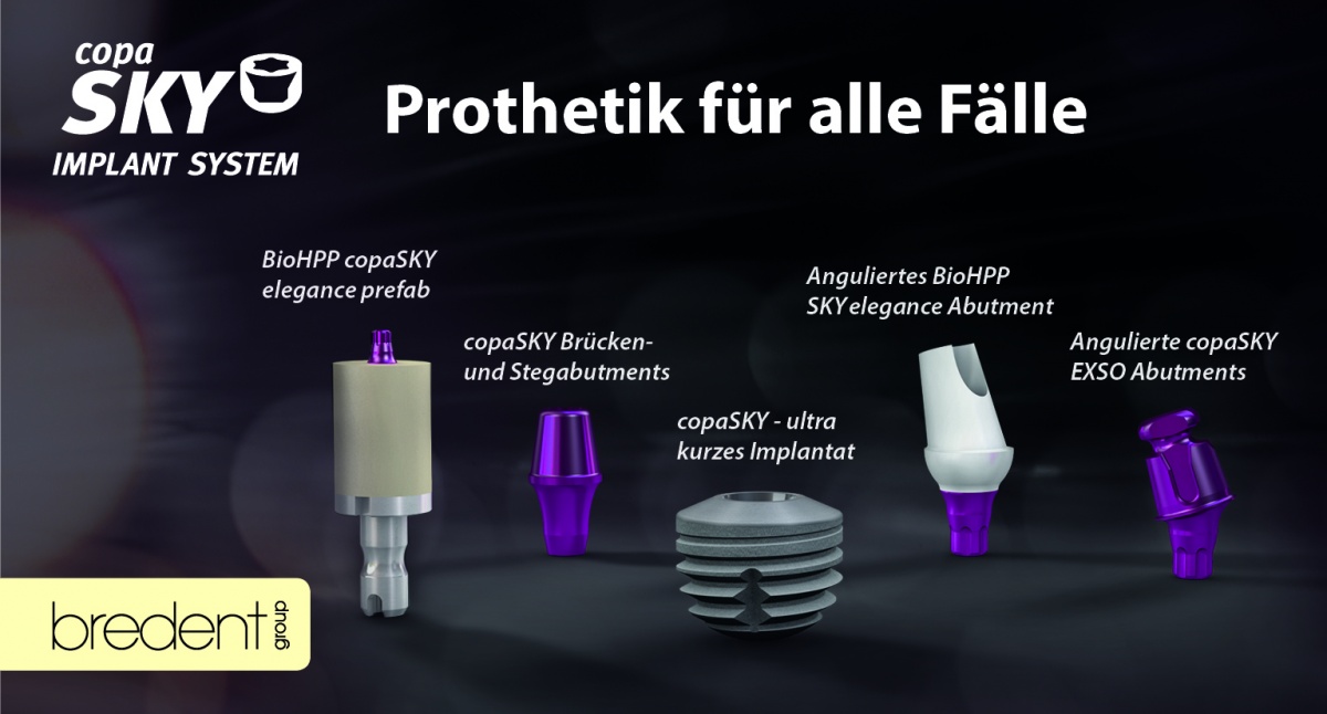 Mit neuen prothetischen Komponenten für das ultrakurze copaSKY-Titanimplantat bietet bredent medical weitere Versorgungsmöglichkeiten für Patienten mit reduziertem Knochenangebot.