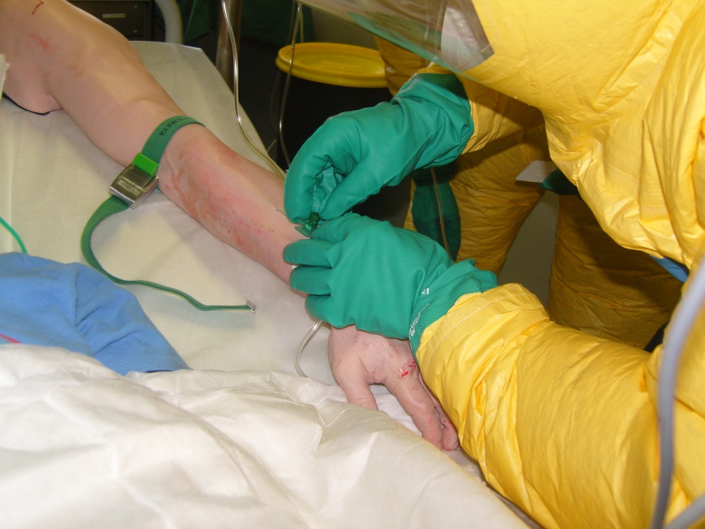 heißt, es trifft ein Tropenrückkehrer mit hohem Fieber, Grippe-ähnlichen Symptomen und Gerinnungsstörungen ein, dann ist äußerste Obacht geboten. Anhand des Reiseprofils und Endemiegebiets, der Anamnese und der Symptome heißt es nun das Krankheitsbild zu erkennen und entsprechend zu handeln. Bei V. a. Erkrankung mit hochkontagiösen Erregern bedeutet dies unter hohem Zeitdruck Entscheidungen zu treffen, die sowohl für Leib und Leben des Patienten, die eigene Gesundheit und die Gesundheit Dritter gravierende Auswirkungen haben können. Dann geht es darum, wie die Pflege und Behandlung solch eines Patienten aussieht – d. h. im Einzelnen, ob die Quarantäne- Einheit aktiviert werden muß, welche persönliche Schutzausrüstung (PSA/ PPE) angelegt wird, welche Personalplanung vorgenommen werden muß, um den Dienstbetrieb aufrecht zu erhalten!