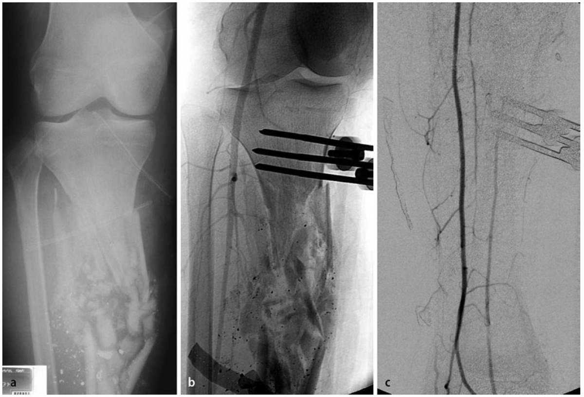 In der Literatur wird die Häufigkeit von Gefäßverletzungen nach Extremitätenbeschuss mit 10–16 % angegeben [30]. Die Rate an notwendigen Amputationen nach kombinierten Gefäßund Knochenverletzungen ist deutlich höher als bei isolierten Gefäßverletzungen [31].