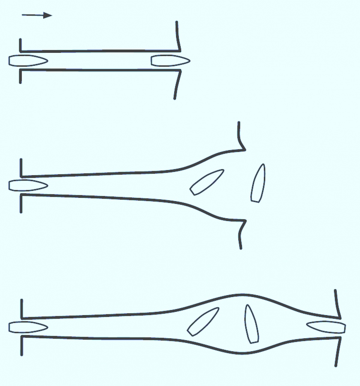 Die idealisierte Darstellung eines Projektildurchtritts bei Verwendung einer Hochenergiewaffe findet sich in Abbildung 1. Der zunächst enge Schusskanal (1) wird durch ein Gieren des Projektils