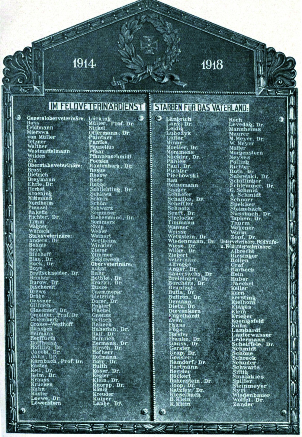 Tierseuchenprophylaxe und -bekämpfung sowie die Behandlung von Verletzungen waren die Hauptaufgaben der Veterinäre, die sie unter schwierigsten Bedingungen und – mangels bestehender Organisation und Material – mit Ideenreichtum und Improvisationstalent lösten. Dabei wurden in den während des Krieges aufgestellten Pferdelazaretten und anderen veterinärmedizinischen Einrichtungen wesentliche Erfahrungen gemacht und Erkenntnisse gewonnen, die Eingang in die Weiterentwicklung der Veterinärmedizin fanden. Über ausgewählte Aspekte hierzu soll in weiteren Beiträgen berichtet werden.