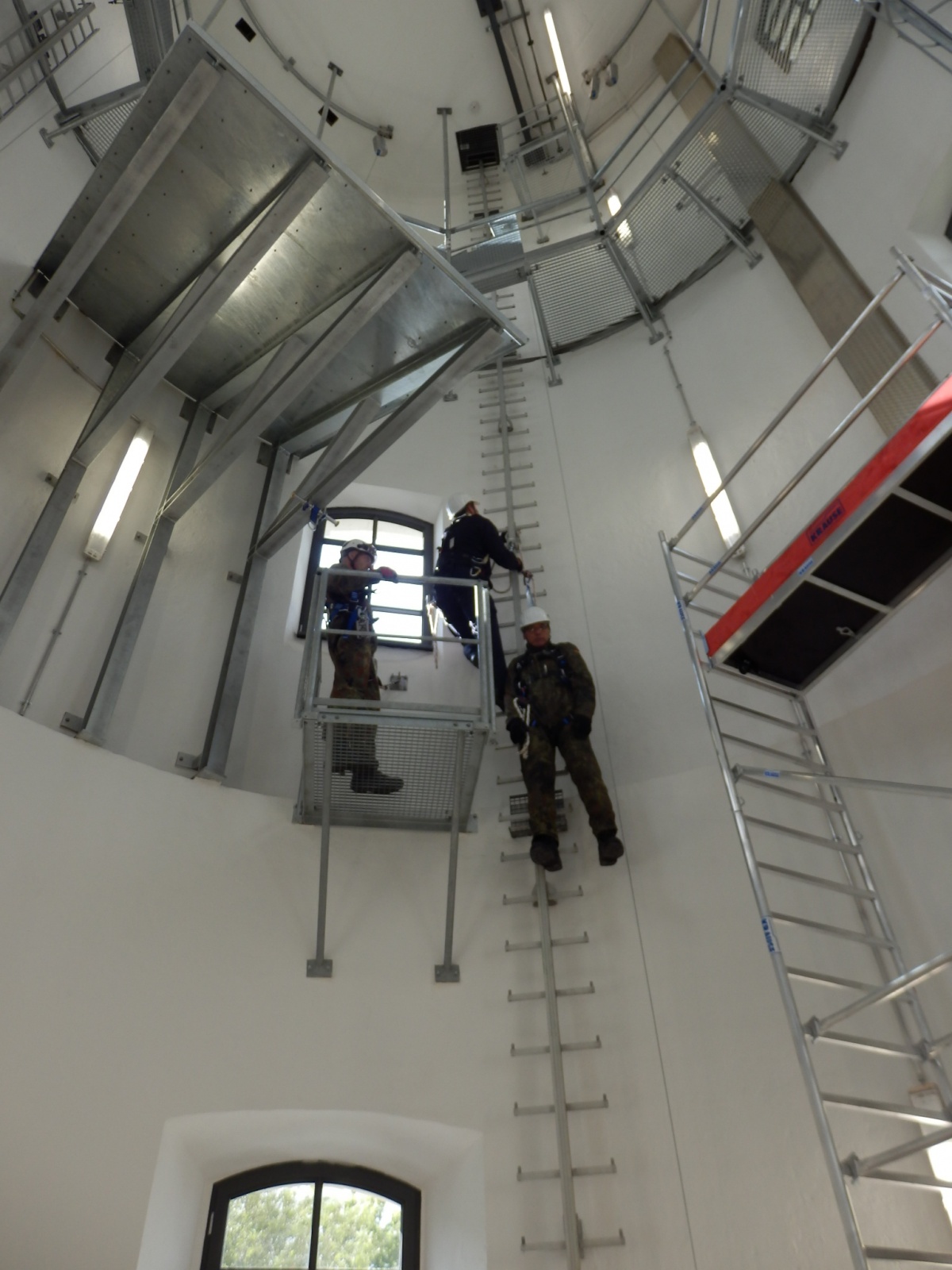 Die Praxisausbildung wird dabei in einem umgebauten Wasserturm durchgeführt, der mit sämtlichen in der Bundeswehr verwendeten Steigleitersystemen sowie Dach- und Plattformsystemen, Gerüsten und verschiedenen Schacht- und Tiefenzugängen ausgestattet ist.