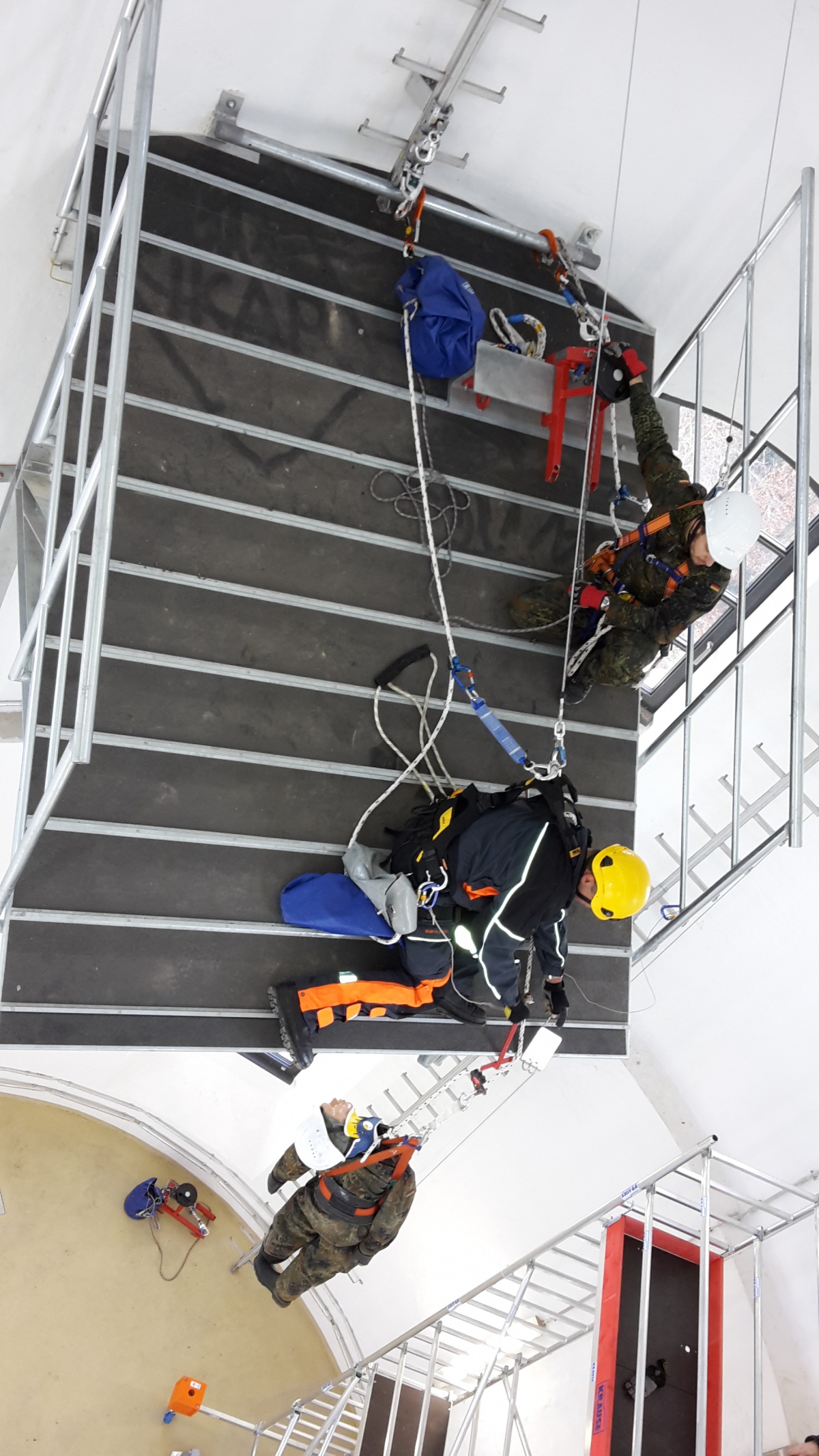 Sie erlernen dabei nicht nur das Anlegen der verschiedenen Gurtsysteme sowie das sichere Verhalten in Höhen, sondern auch den Umgang mit Rettungsgeräten verschiedener Hersteller bei aktiven und passiven Rettungen. Weiter sind sie in der Lage, die dabei eingesetzten Materialien sachkundig zu prüfen und zu bewerten.